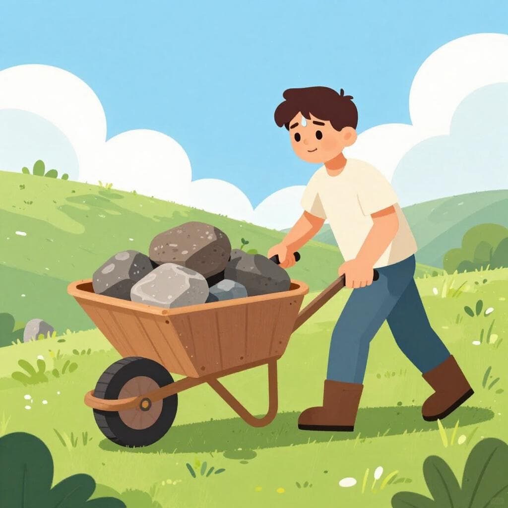 B2Dimenticò i suoi dolori nella fatica del lavoro quotidiano.