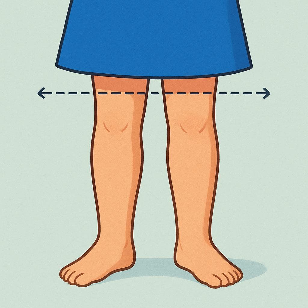 Una persona che indossa una gonna che termina visibilmente esattamente all'altezza del ginocchio, illustrando l'estensione fisica.