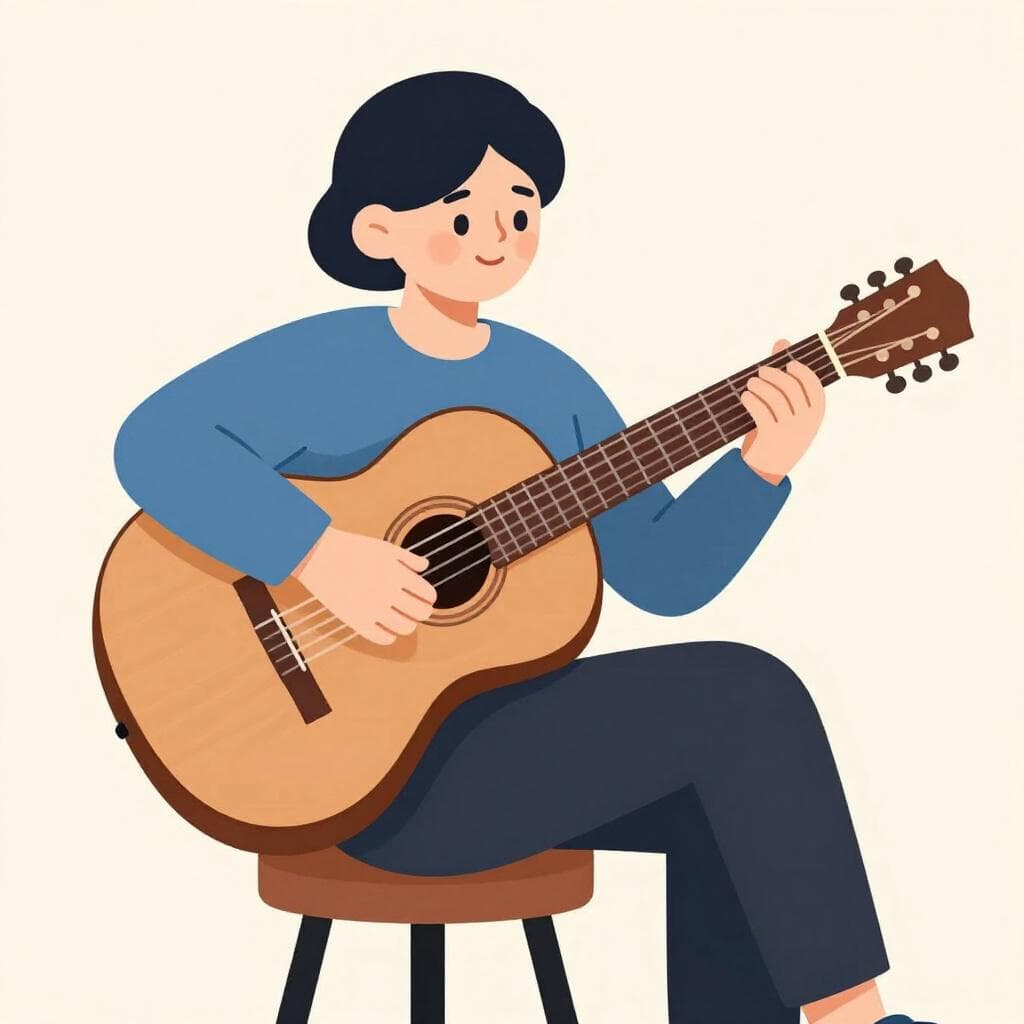Ella toca la guitarra acústica muy bien.