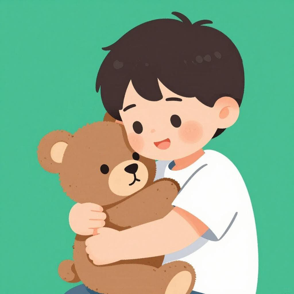 A small child hugging a fluffy brown teddy bear.