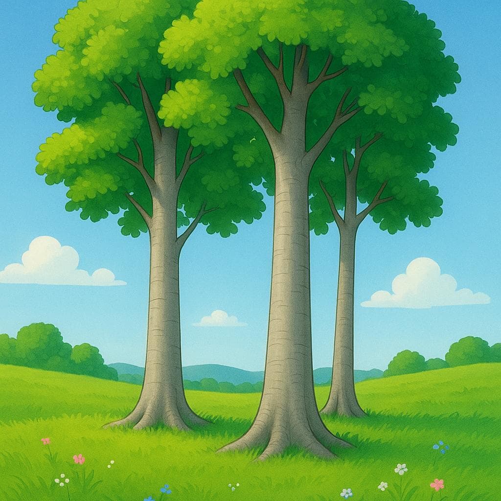 B2Beech trees are tall trees with smooth, gray bark.