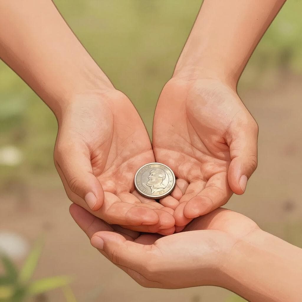 Der Bettler dankte für das Almosen, das ihm angeboten wurde.