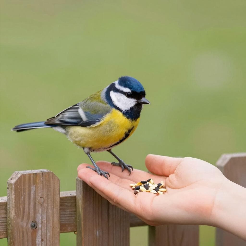 She feeds the birds in the park.