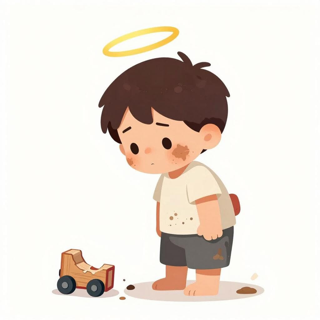 Regarde ce petit ange ; on dirait qu'il n'a jamais cassé d'assiette de sa vie (il a l'air inoffensif).