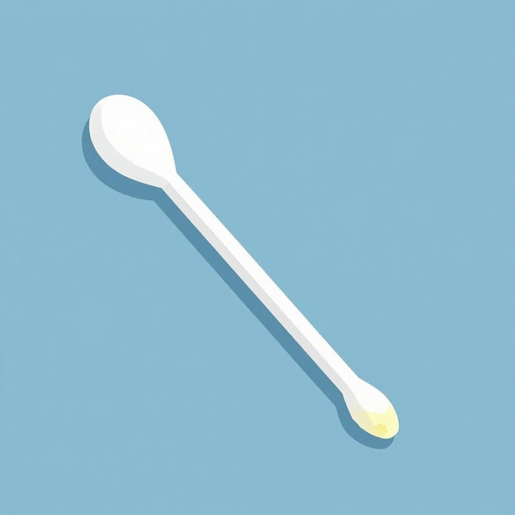 綿棒の先端に少量の黄色いワックスが付着しているクローズアップ。