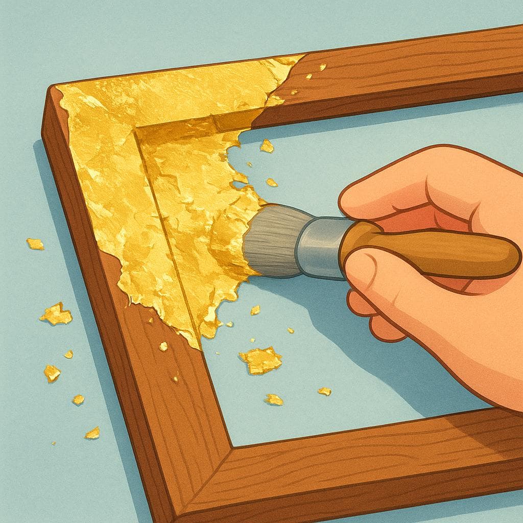 De restaurateur werkte eraan om de vergulding van de schilderijlijst te behouden.